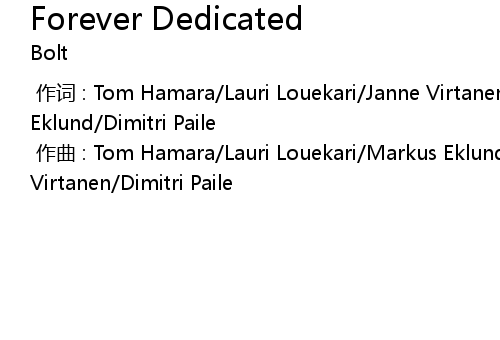 | [00:00.00-1] | 作词 : Tom Hamara/Lauri Louekari/Janne Virtanen/Markus Eklund/Dimitri Paile |