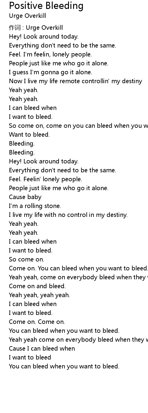 | Yeah yeah, come on everybody bleed when they want to bleed. | |