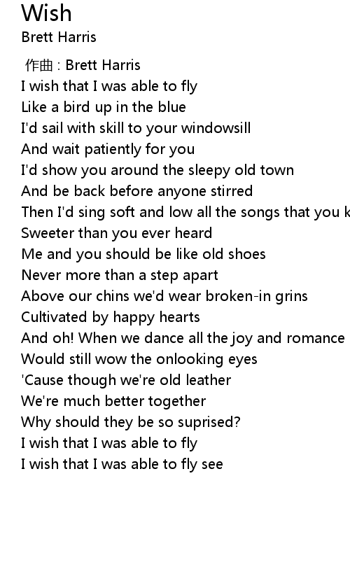 | [00:14.501] | I wish that I was able to fly |