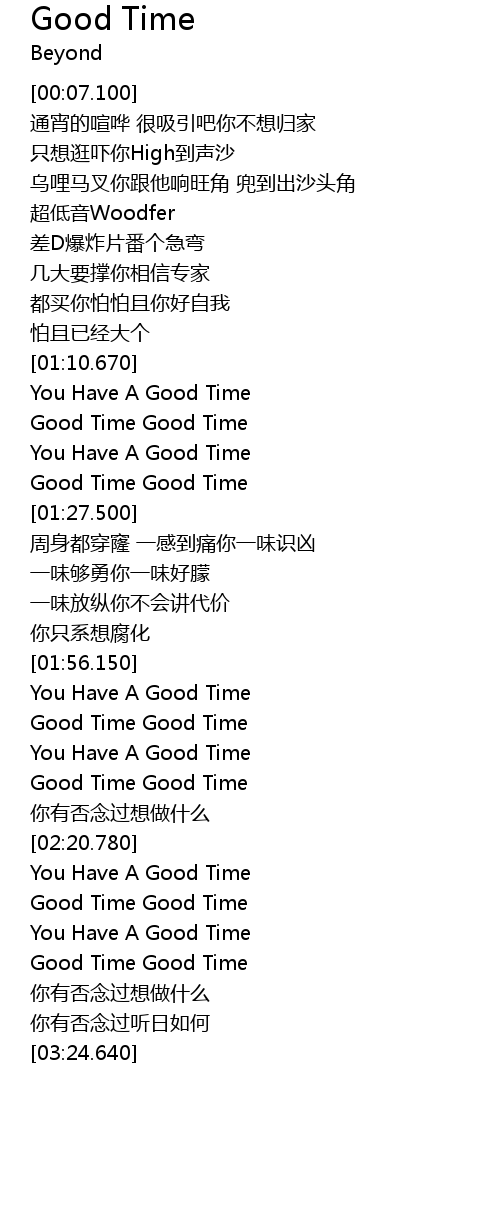 | [02:00.660] | Good Time Good Time |