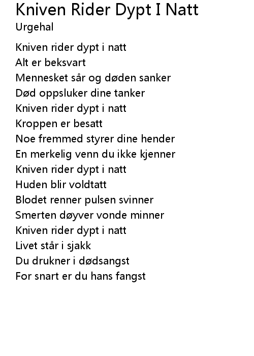 | Song | Kniven Rider Dypt I Natt |