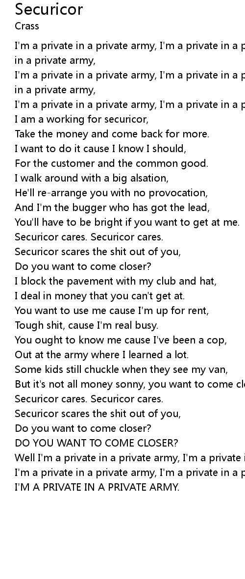 I'm a private in a private army, I'm a private in a private army, I'm a private in a private army,