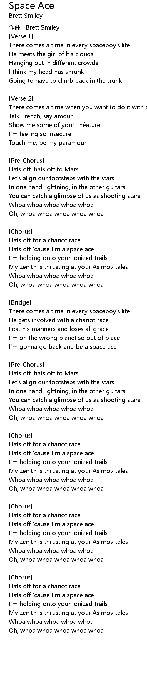 | Hats off 'cause I'm a space ace | |