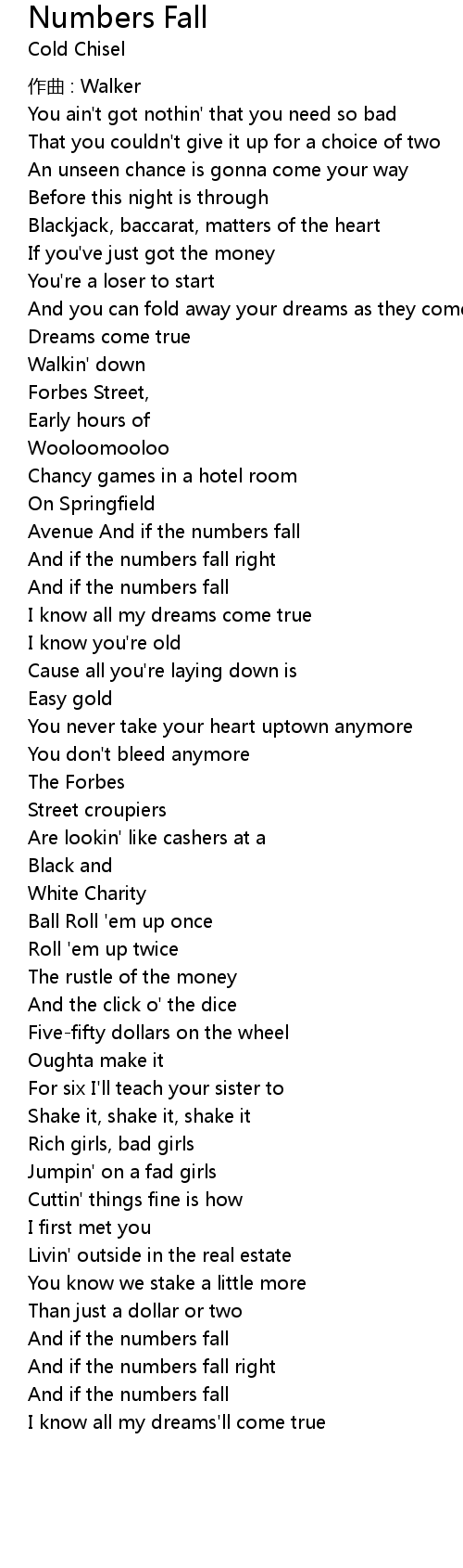 | Song | Numbers Fall |