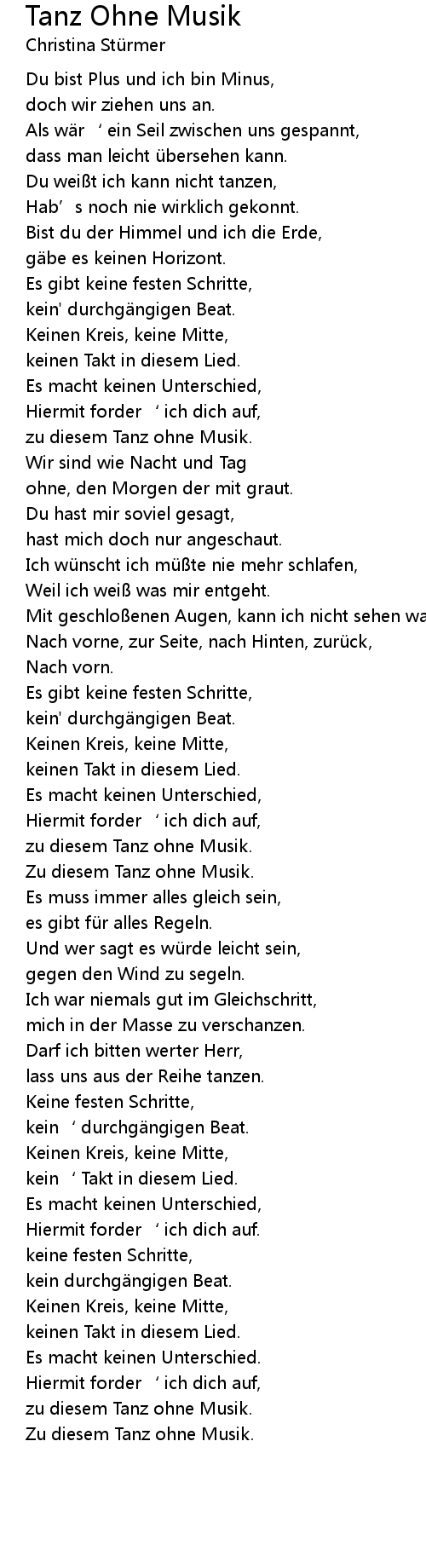 | Song | Tanz Ohne Musik |