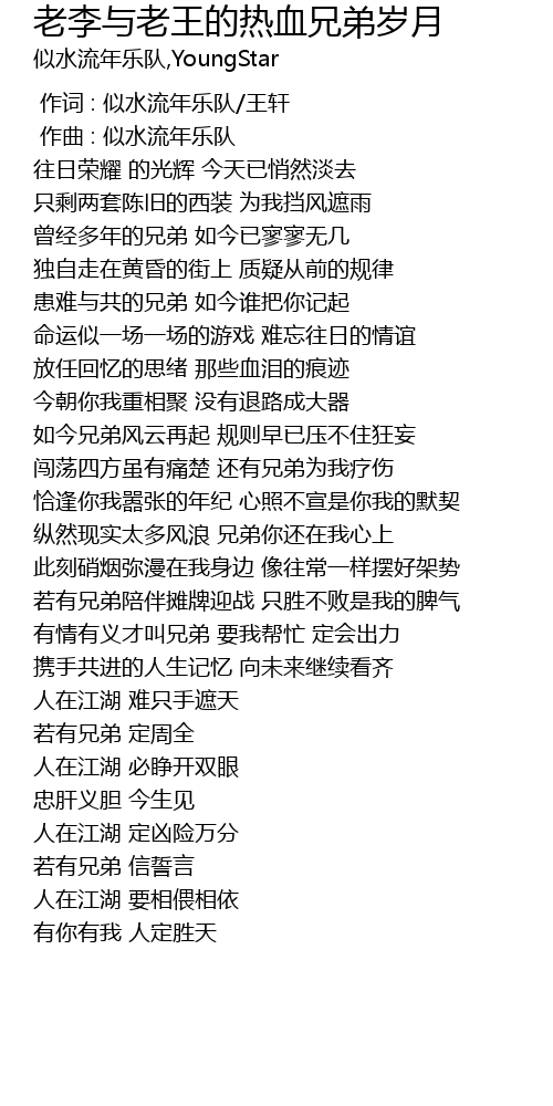 | [00:00.000] | 作词 : 似水流年乐队/王轩 |