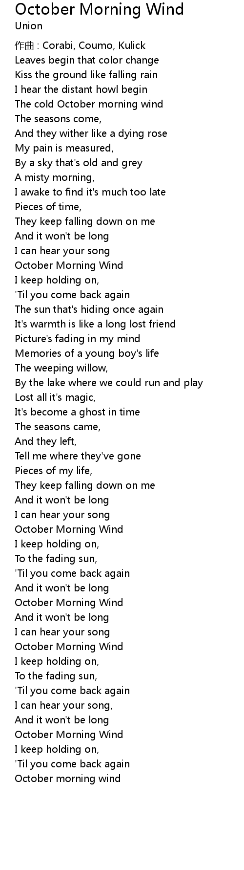| Song | October Morning Wind |