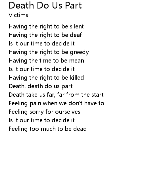 | Death, death do us part | |