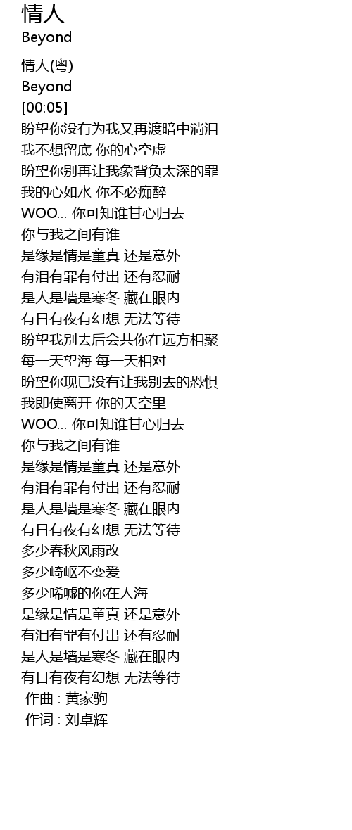 | [00:00.00] | 作曲 : 黄家驹 |