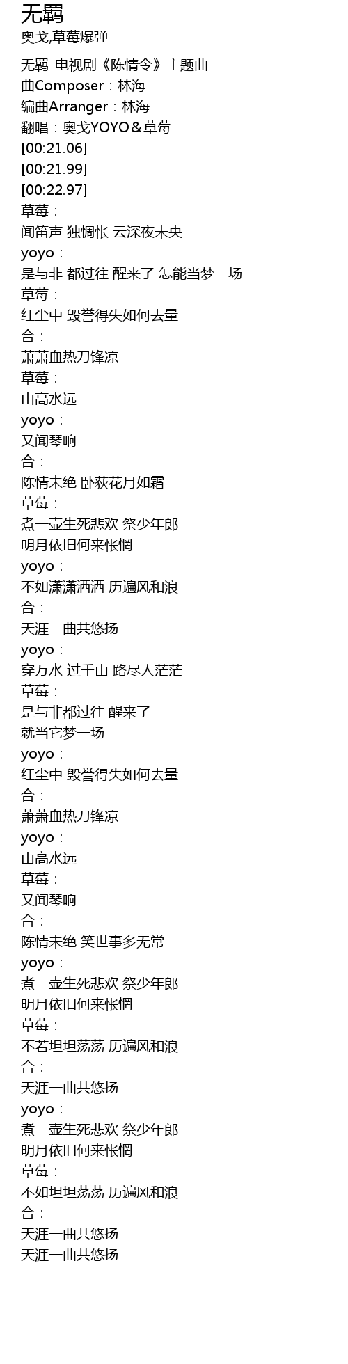 | [00:19.61] | 翻唱:奥戈YOYO&草莓 |