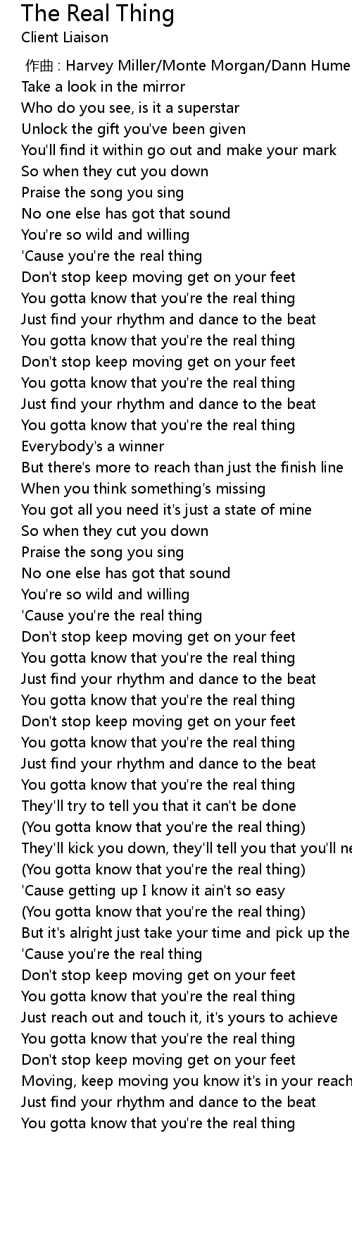 | [02:45.10] | (You gotta know that you're the real thing) |