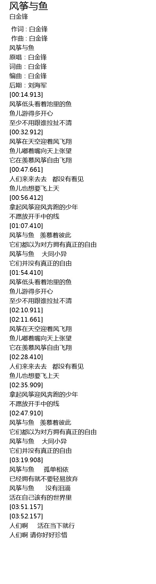| [03:04.409] | 风筝与鱼 大同小异 |