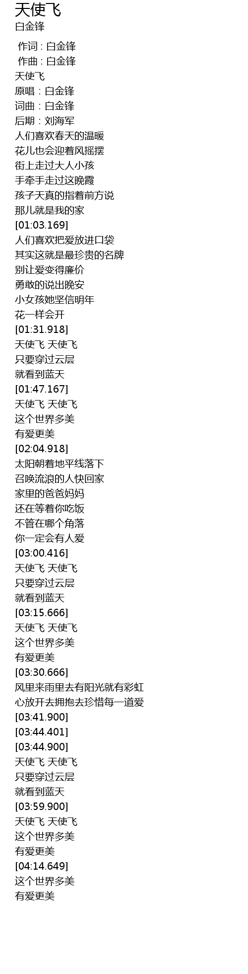 | [03:45.152] | 天使飞 天使飞 |