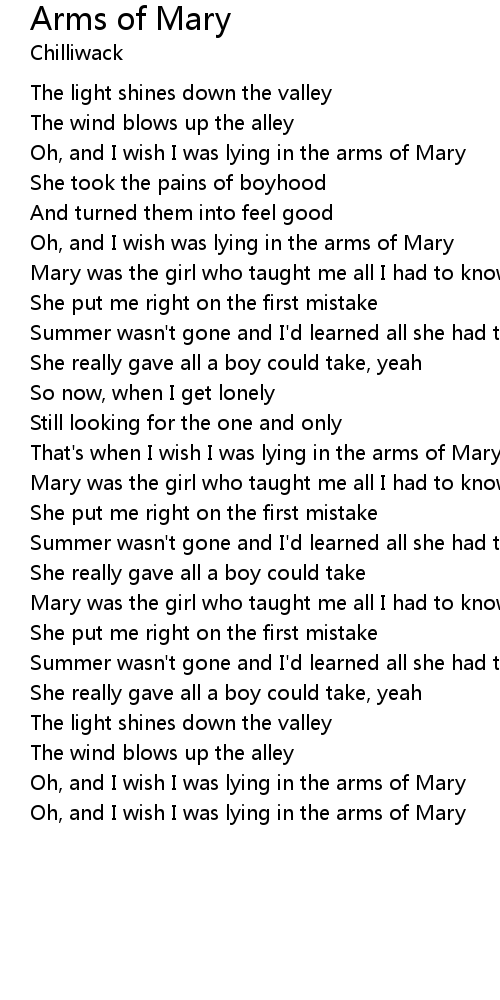 Oh, and I wish was lying in the arms of Mary |