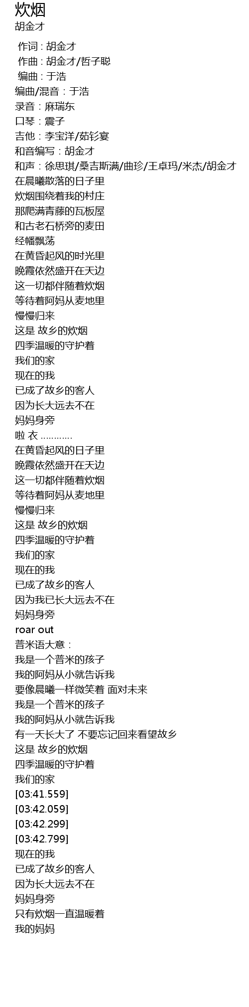 | [03:27.799] | 这是 故乡的炊烟 |
