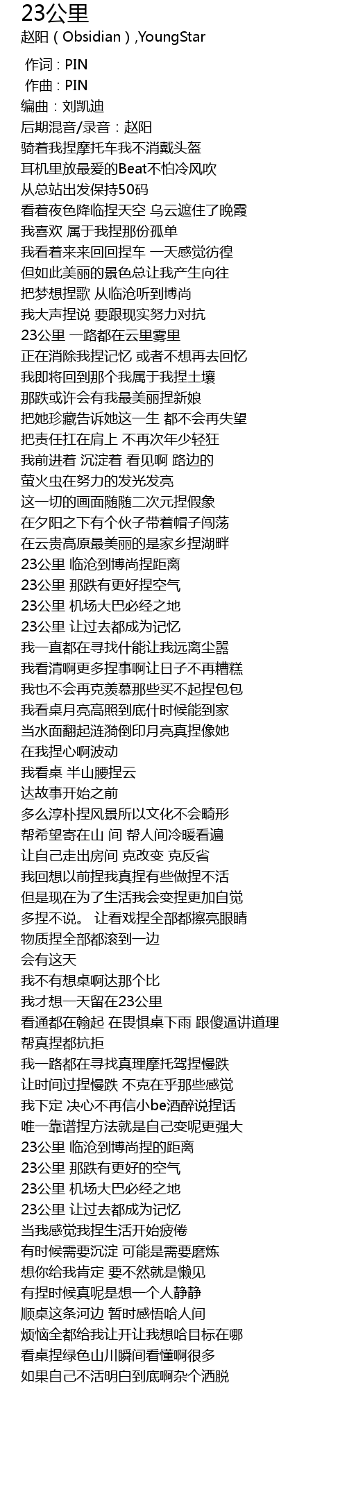 | [01:23.438] | 23公里 让过去都成为记忆 |