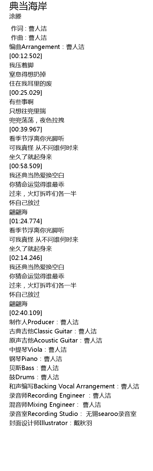 | [02:42.886] | 原声吉他Acoustic Guitar:曹人洁 |