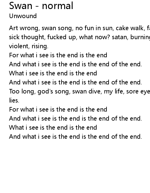Art wrong, swan song, no fun in sun, cake walk, fake talk, burn hot, bad plot, sick thought, fucked up, what now? satan, burning, sun tanned rock fan, plastic, violent, rising. |