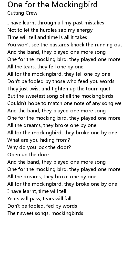 All for the mockingbird, they broke one by one |