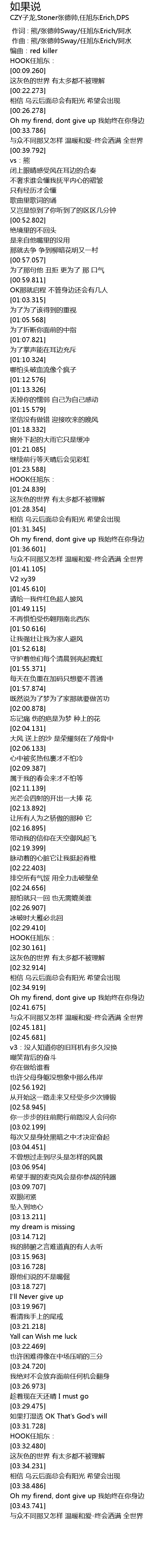 | [00:00.000] | 作词 : 熊/张德帅Sway/任旭东Erich/阿水 |