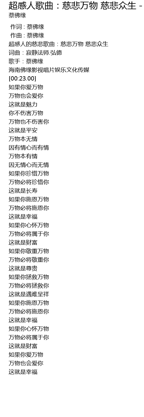 | [00:00.00] | 超感人的慈悲歌曲:慈悲万物 慈悲众生 |