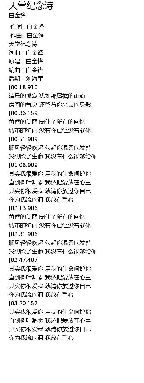 | [00:06.161] | 天堂纪念诗 |