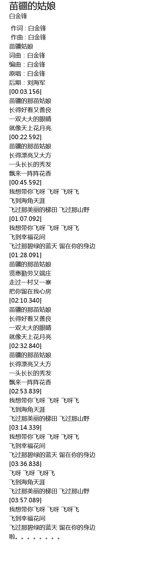 | [00:03.906] | miáo jiāng de nà miáo gū niáng |