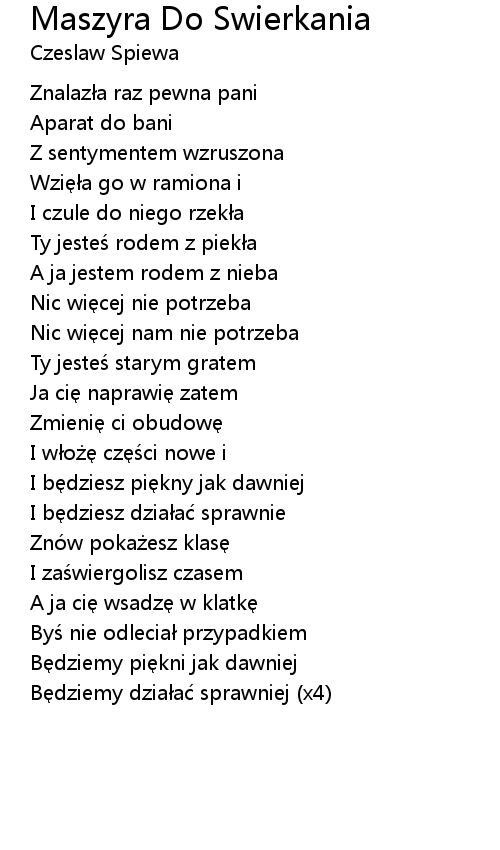 | Song | Maszyra Do Swierkania |