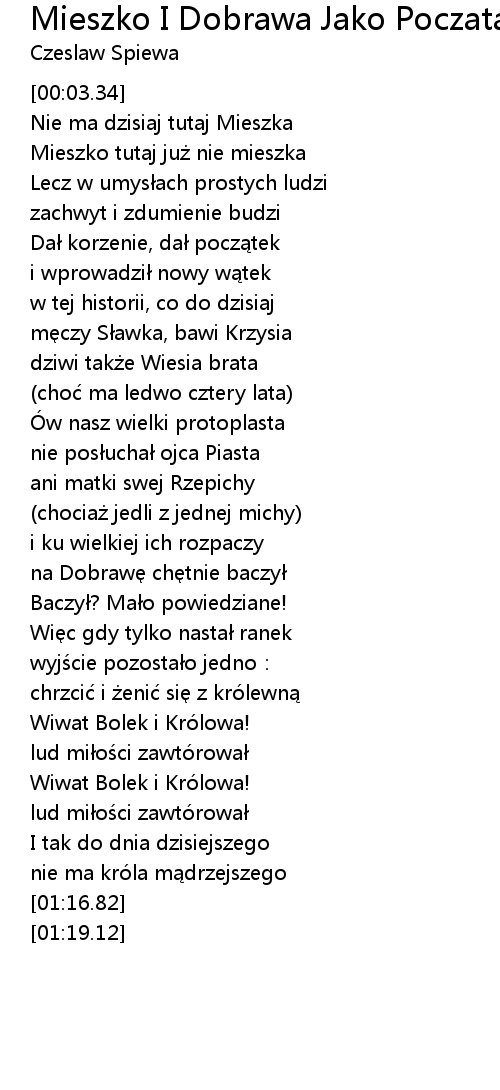 | Song | Mieszko I Dobrawa Jako Poczatak Panstwa Polskiego |