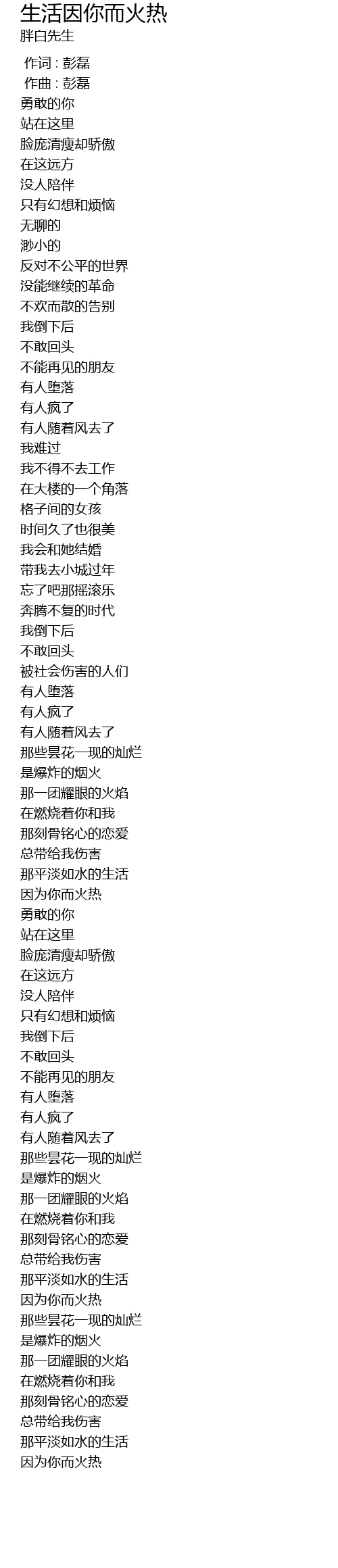 | [00:00.000] | 作词 : 彭磊 |