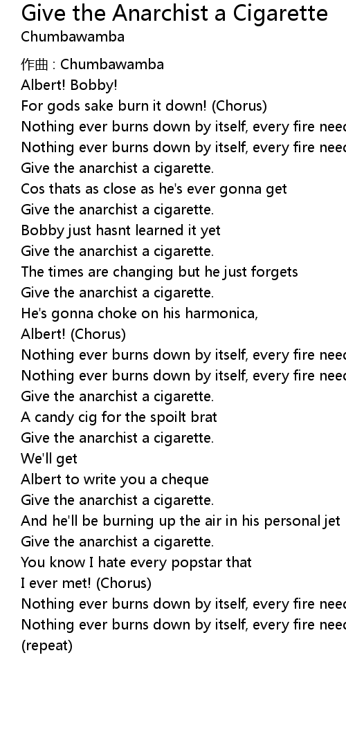 | Nothing ever burns down by itself, every fire needs a little bit of help (repeat) |