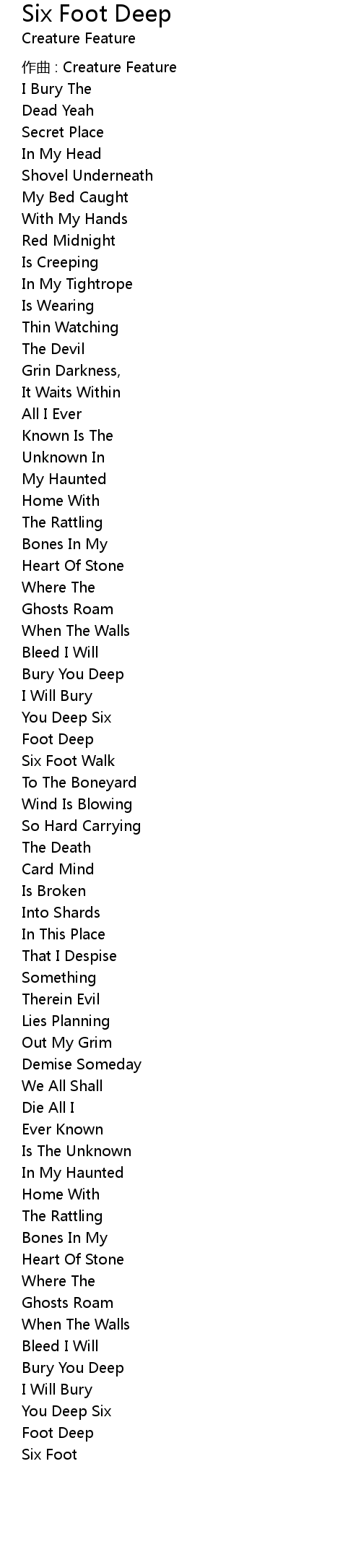 | Song | Six Foot Deep |