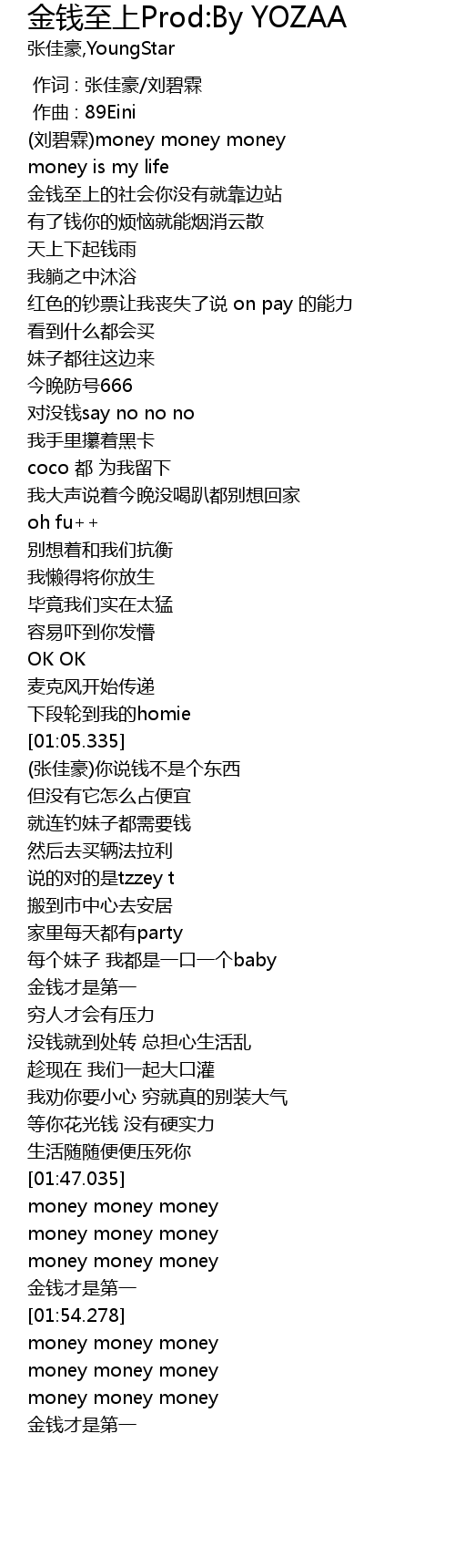 | [00:23.103] | 有了钱你的烦恼就能烟消云散 |