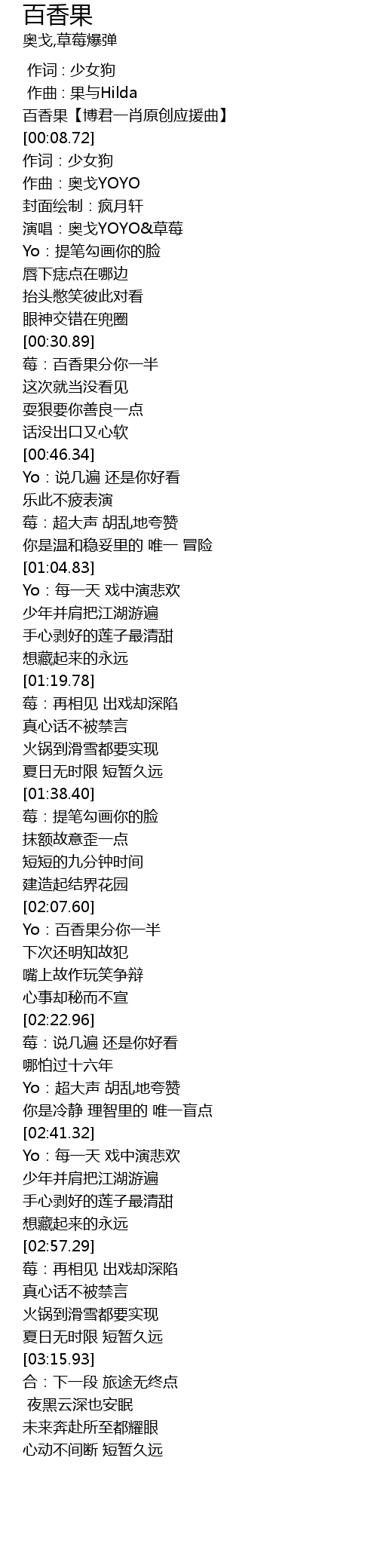 | [00:15.70] | 演唱:奥戈YOYO&草莓 |