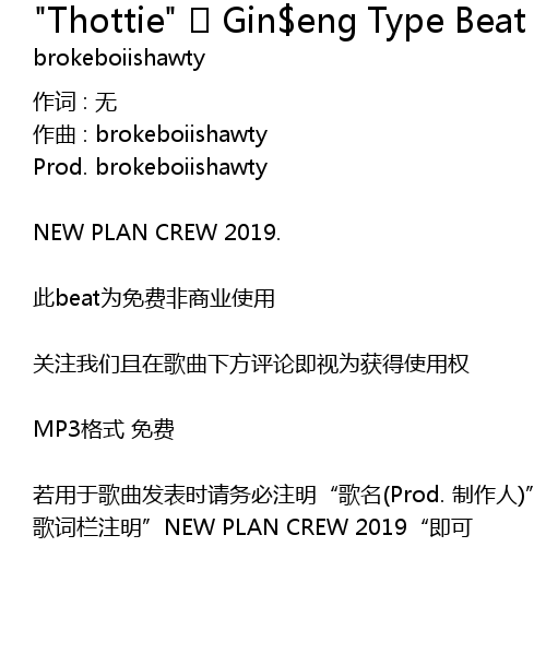 | ruo yong yu ge qu fa biao shi qing wu bi zhu ming" ge ming Prod. zhi zuo ren" ge ci lan zhu ming" NEW PLAN CREW 2019" ji ke |