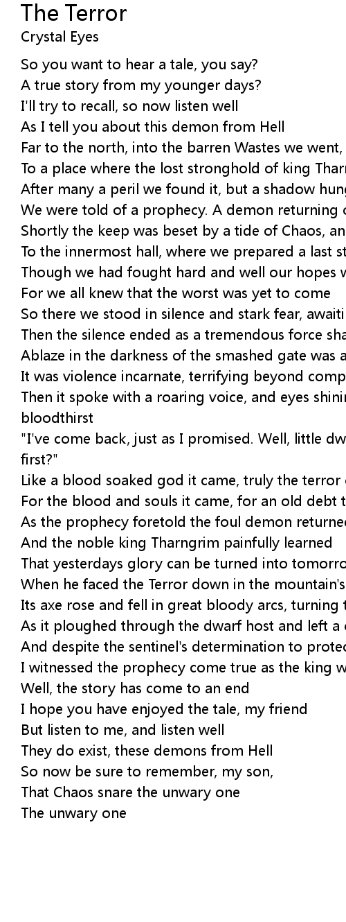 Ablaze in the darkness of the smashed gate was a pair of eyes. Like burning coal |