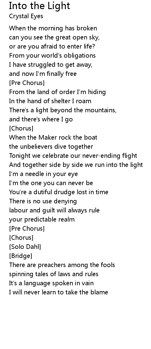 And together side by side we run into the light |
