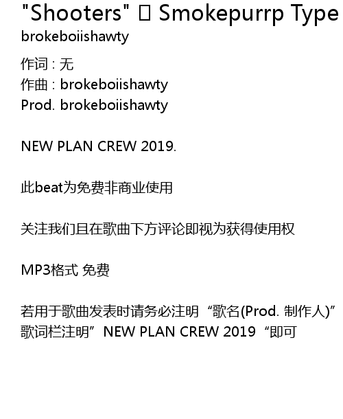 | ruo yong yu ge qu fa biao shi qing wu bi zhu ming" ge ming Prod. zhi zuo ren" ge ci lan zhu ming" NEW PLAN CREW 2019" ji ke |