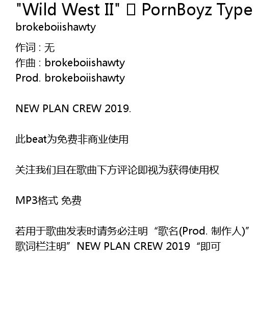 | Song | "Wild West II" ✧ PornBoyz Type Beat |