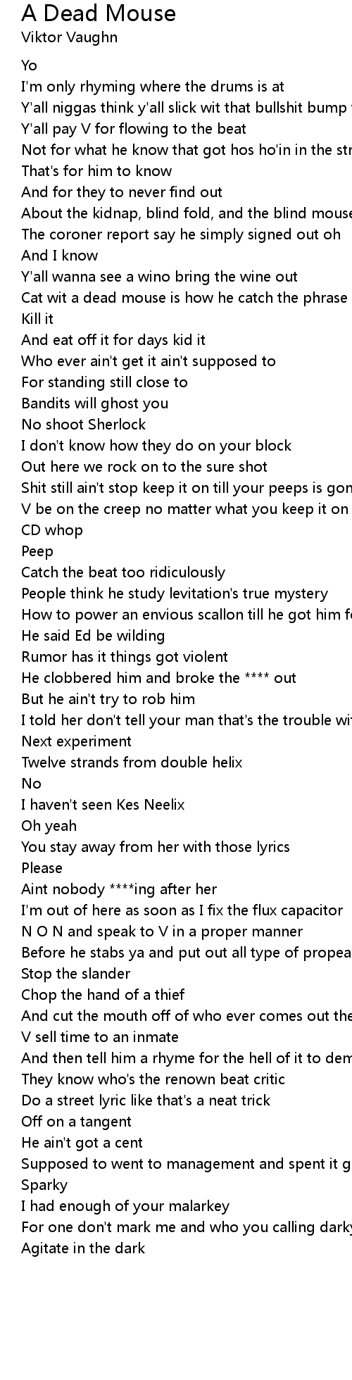Cat wit a dead mouse is how he catch the phrase and pause plays wit it |