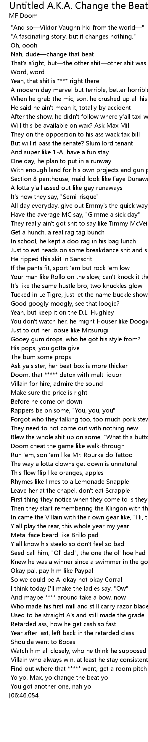 | [06:39.432] | Yo yo, Max, yo change the beat yo |