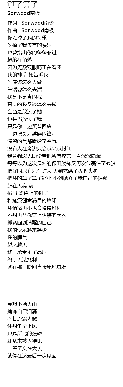 | 把坏的算了算了缩小 小到抛弃了我自己的倔强 | |