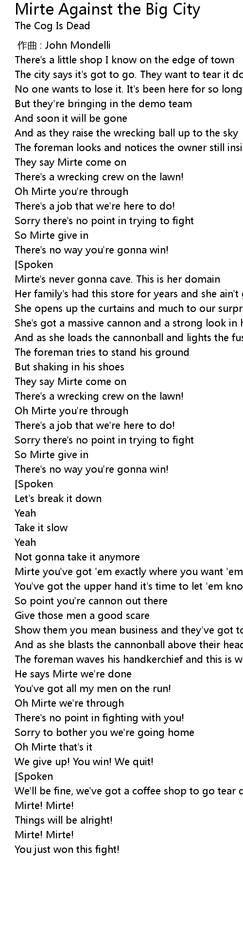 | [01:51.73] | There's a wrecking crew on the lawn! |