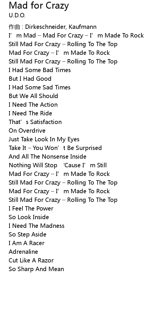| I' m Mad Mad For Crazy I' m Made To Rock | |