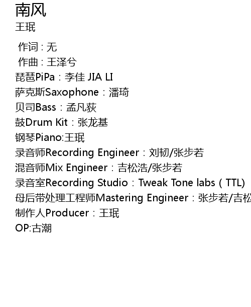| [00:17.515] | 录音师Recording Engineer:刘韧/张步若 |