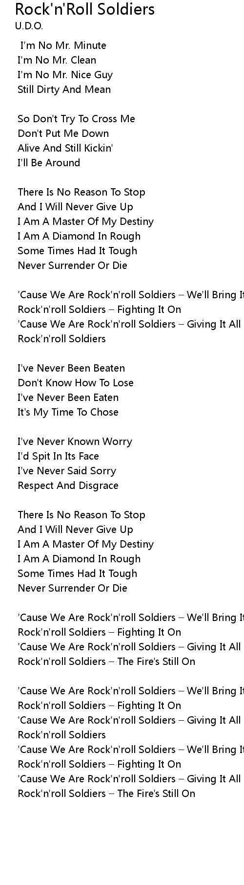| ' Cause We Are Rock' n' roll Soldiers We' ll Bring It On | |