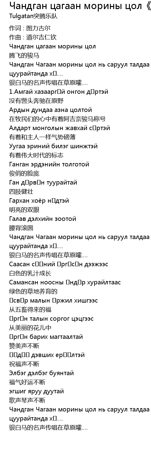 | Song | Чандган цагаан морины цол《腾飞的骏马》 |