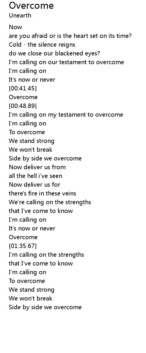 I'm calling on our testament to overcome |