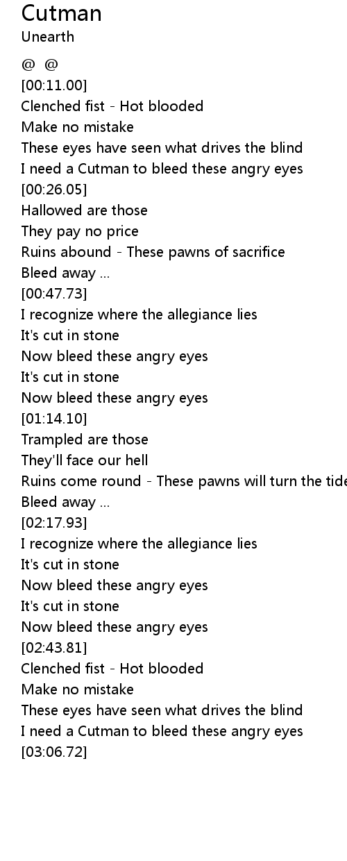 | [00:20.97] | I need a Cutman to bleed these angry eyes |
