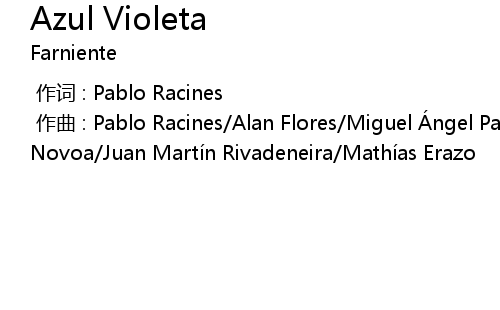 | [00:00.00-1] | 作曲 : Pablo Racines/Alan Flores/Miguel Ángel Palacios/Andrés Novoa/Juan Martín Rivadeneira/Mathías Erazo |